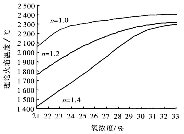 城市煤氣理論火焰溫度與氧濃度關(guān)系圖